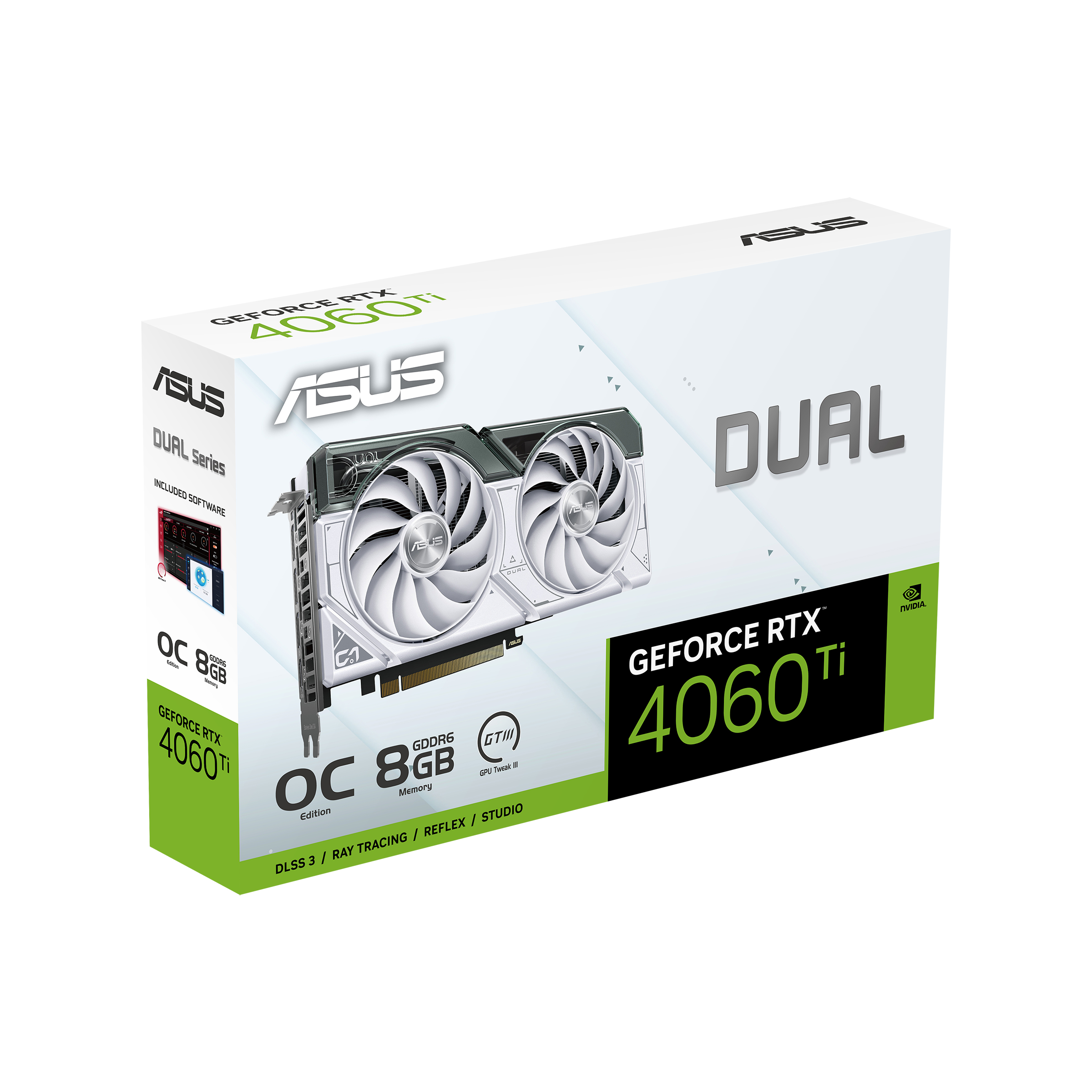 ASUS Dual -RTX4060TI-O8G-WHITE, GeForce RTX 4060 Ti, 8 GB, GDDR6, 128 Bit, 7680 x 4320 Pixels, PCI Express 4.0