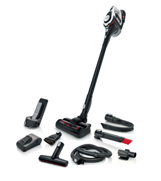 De Bosch Series 8 BSS825FRSH snoerloze stofzuiger is een echte krachtpatser. Met een batterij die 45 minuten meegaat, kun je met deze stofzuiger zonder stofzak ongestoord rondzwerven en elk hoekje en gaatje in je huis bereiken. Het moderne zwart-witte ontwerp ziet er gestroomlijnd uit, terwijl het compacte ontwerp het gemakkelijk maakt om rond meubels te manoeuvreren. Geen gedoe meer met snoeren of stofzuigerzakken – je hoeft alleen maar te klikken om de gefilterde opvangbak te legen. Ondanks de krachtige zuigkracht voor het opvangen van fijn stof, zal deze stille stofzuiger je huishouden niet verstoren. Betrouwbare reiniging ontmoet eigentijdse stijl met de Serie 8 BSS825FRSH van Bosch. Soort reiniging: Droog, Vuilafscheidingsmethode: Filtrerend. Type stofzuigercontainer: Zakloos, Kleur van het product: Zwart, Wit. Stroombron: Batterij/Accu, Looptijd: 45 min.