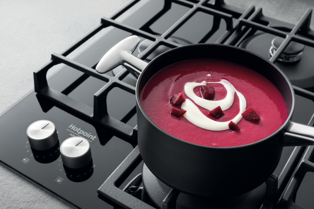 Hotpoint HAGS 62F/BK, Zwart, Ingebouwd, 59 cm, Gaskookplaat, Glas, 4 zone(s)