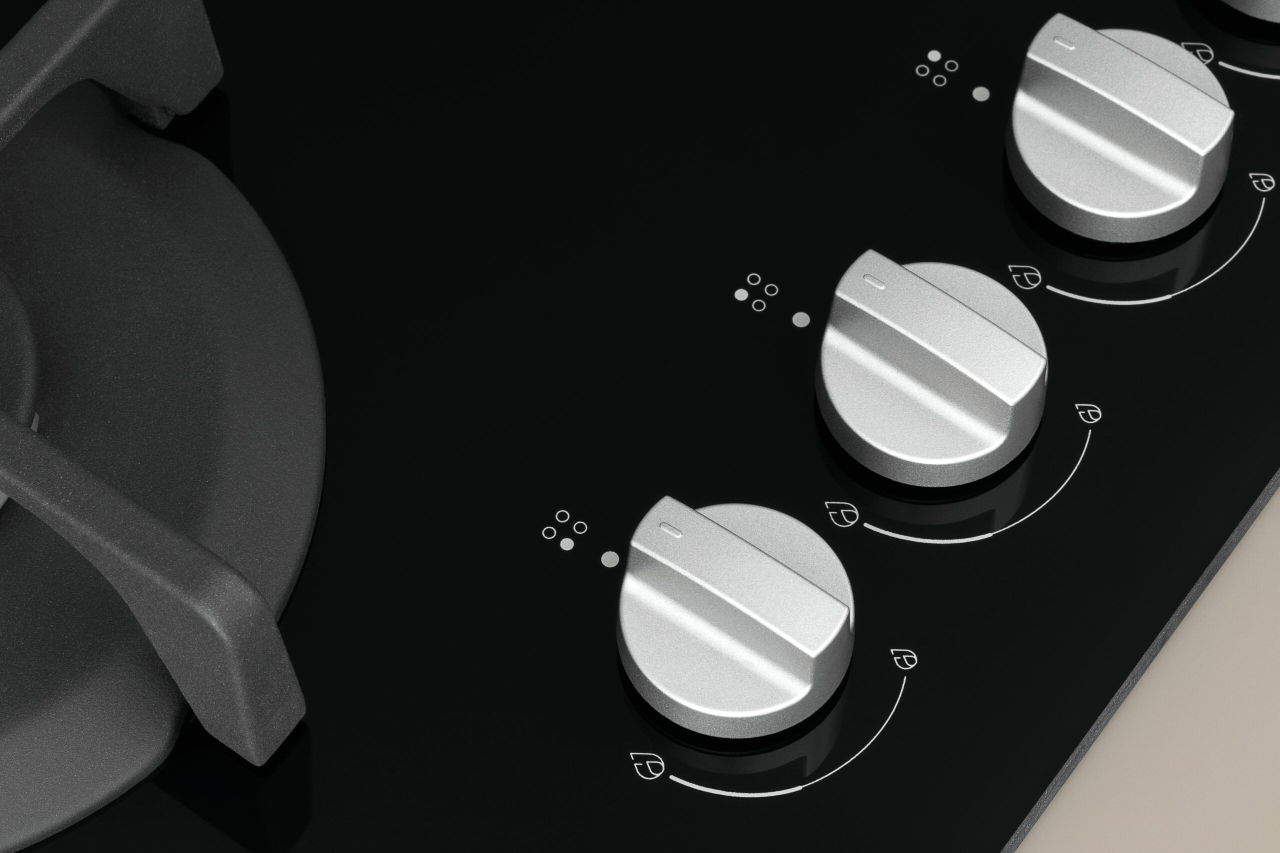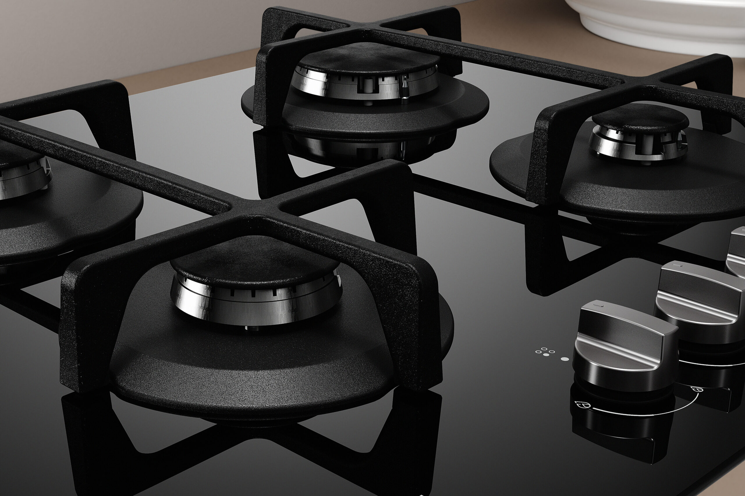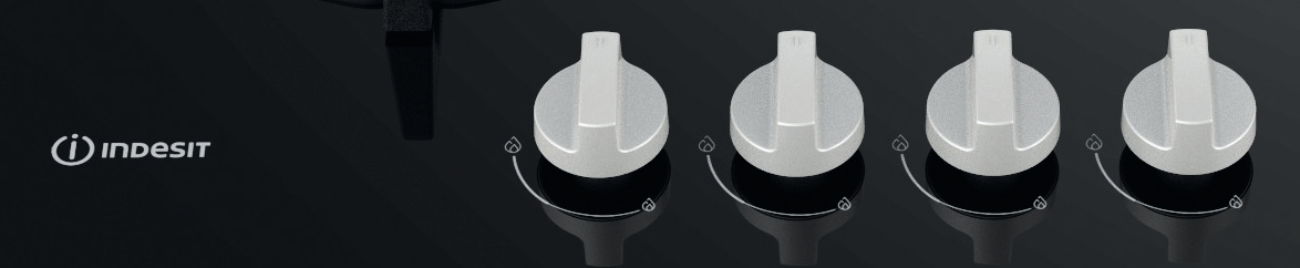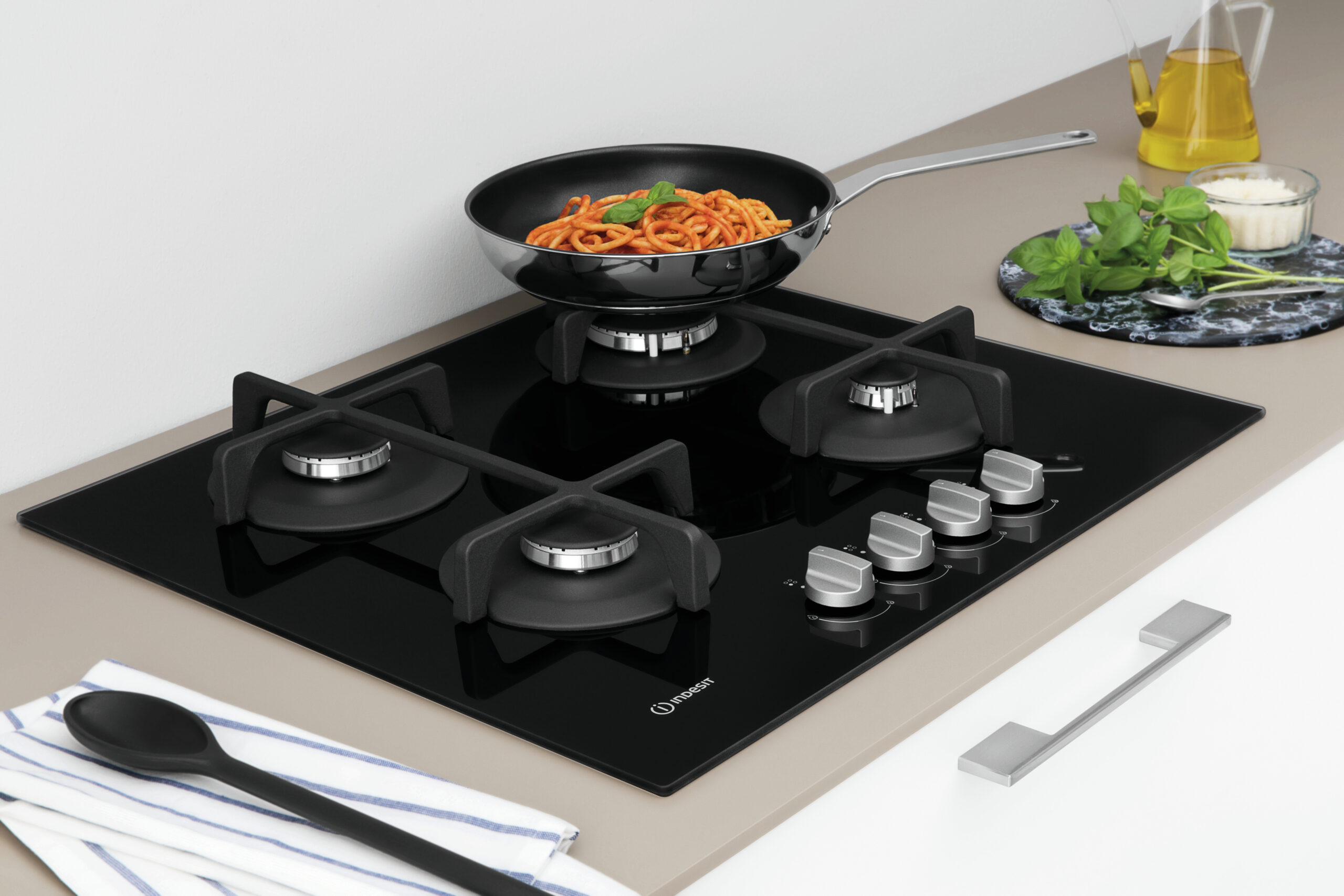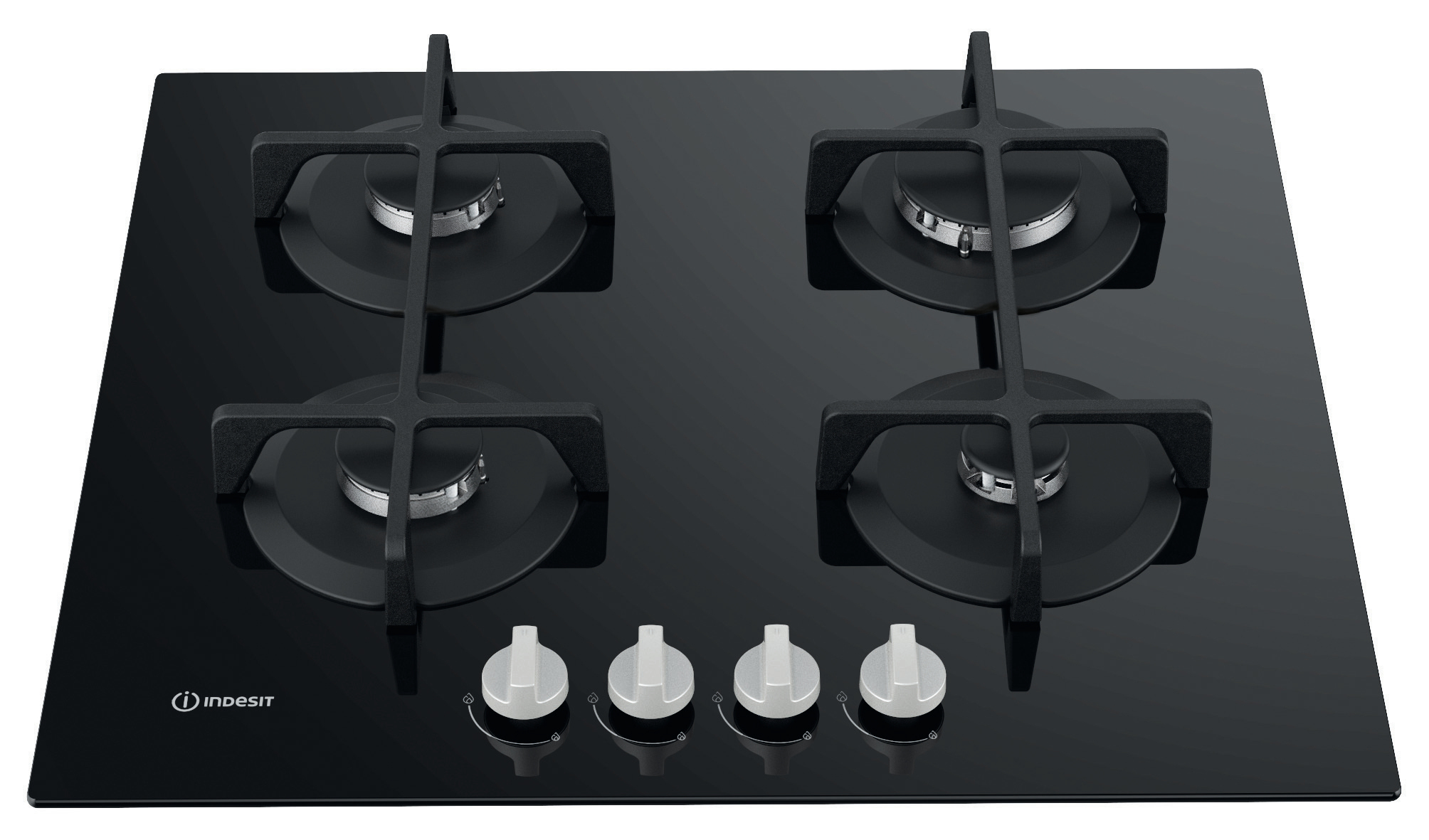 Indesit ING 61T/BK, Zwart, Ingebouwd, 59 cm, Gaskookplaat, Glas, 4 zone(s)