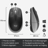 Logitech M190 Full-Size Wireless Mouse. Vormfactor: Ambidextrous. Bewegingsdetectietechnologie: Optisch, Aansluiting: RF Draadloos, Bewegingsresolutie: 1000 DPI, Soort knoppen: Drukknoppen, Aantal knoppen: 3, Scroll type: Wiel. Stroombron: Batterijen. Kleur van het product: Zwart, Grijs