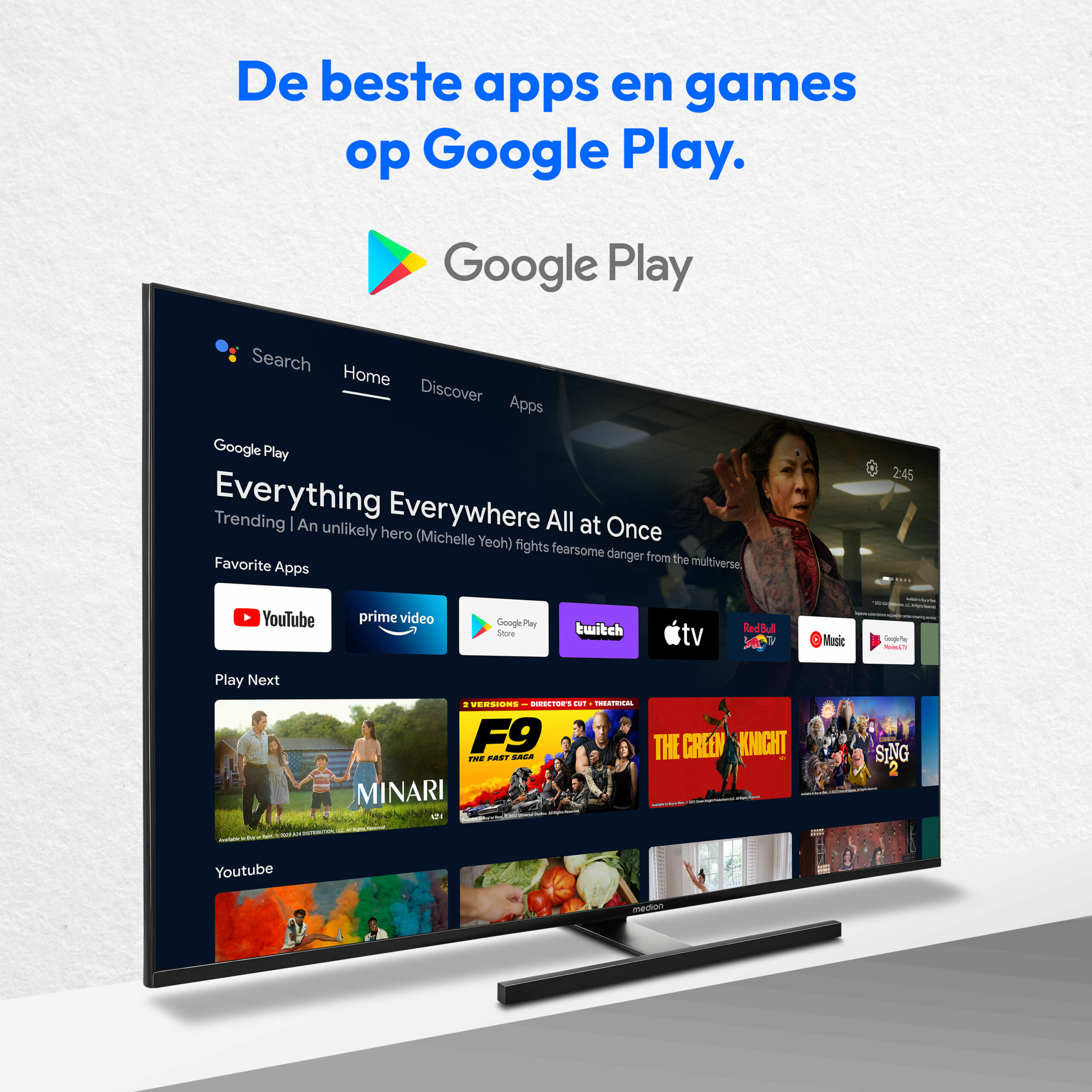 Met jouw Android TV haal je het maximale entertainment uit jouw TV. Je hebt rechtstreeks toegang tot meer dan 400.000 films en series die je kunt bekijken via bekende streaming platforms zoals Netflix en Amazon Prime Video. Om jouw favorieten sneller terug te vinden, kun je gemakkelijk jouw eigen startscherm maken. Je kunt ook gemakkelijk al jouw favoriete apps downloaden via Google Play.
