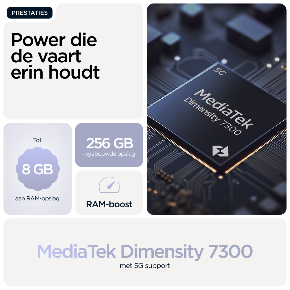 Opvallend design. Grote avonturen.nVoor wie grenzen wil verleggen in het leven: maak kennis met de moto g86 5G. Dit model is prachtig vormgegeven met hoogwaardige materialen en valt echt op door z’n opvallende design met geavanceerde water- en valbestendigheid(6,7). Zie alles op een ultra-helder 6,67-inch Super HD (1220p) display met Dolby Atmos®-geluid. Leg prachtige foto’s vans met de 50MP Sony LYTIA™ 600-camera met moto ai(12) en maak moeiteloos professionele foto’s. Profiteer van 41 uur batterijduur in slechts enkele minuten met TurboPower™ opladen(1,13). Ervaar de kracht van een geavanceerde processor en 8 GB – uitbreidbaar tot 24 GB met RAM-boost – en tot 256 GB aan opslag(3,9). Verhoog je creatieve vrijheid, soepele interactie en gemoedsrust met exclusieve Moto-functies. Geniet van het avontuur in het leven met de moto g86 5G.