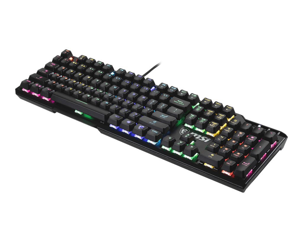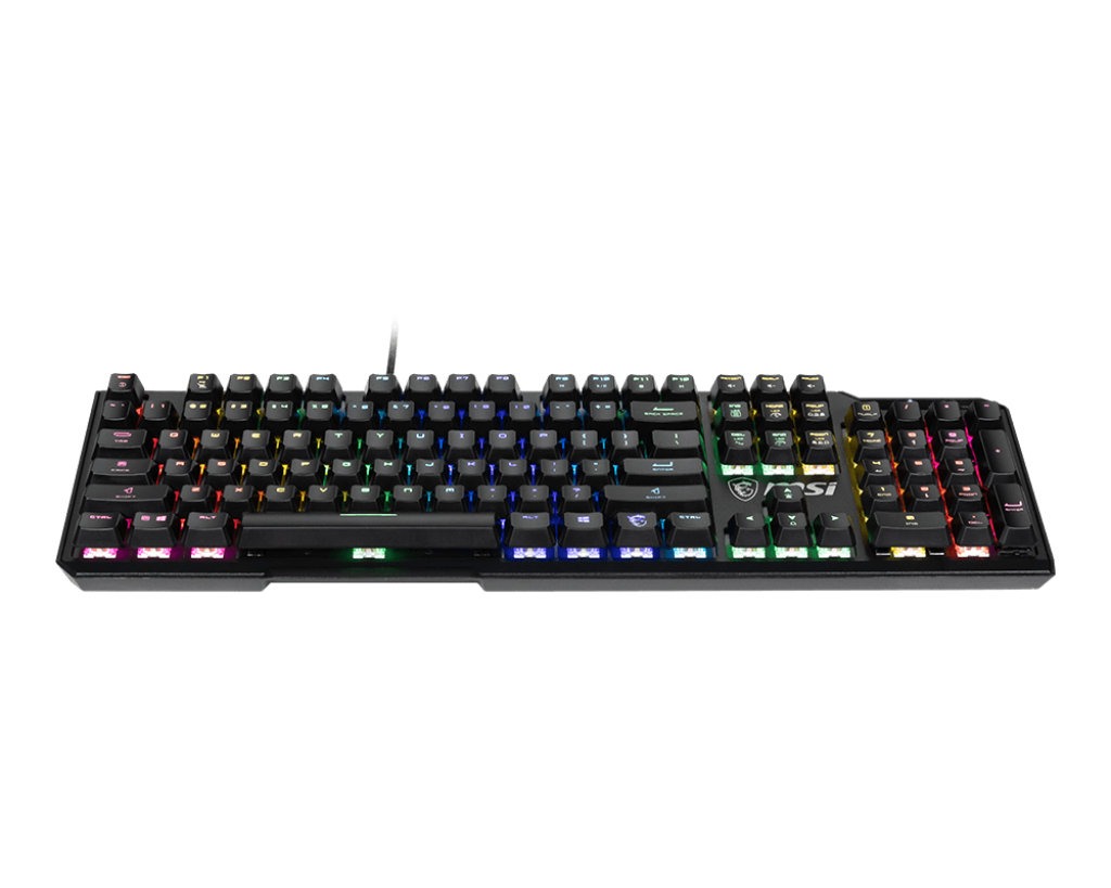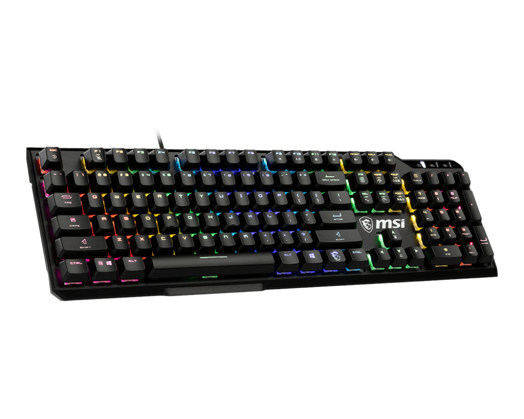 MSI Vigor GK41 LR US. Toetsenbord formaat: Volledige grootte (100%). Stijl toetsenbord: Recht. Connectiviteitstechnologie: Bedraad, Aansluiting: USB, Toetsenbord toetsschakelaar: Membraan keyswitch, Toetsenbordindeling: QWERTY. Backlight type: RGB LED, Polssteun. Aanbevolen gebruik: Gamen. Kleur van het product: Zwart