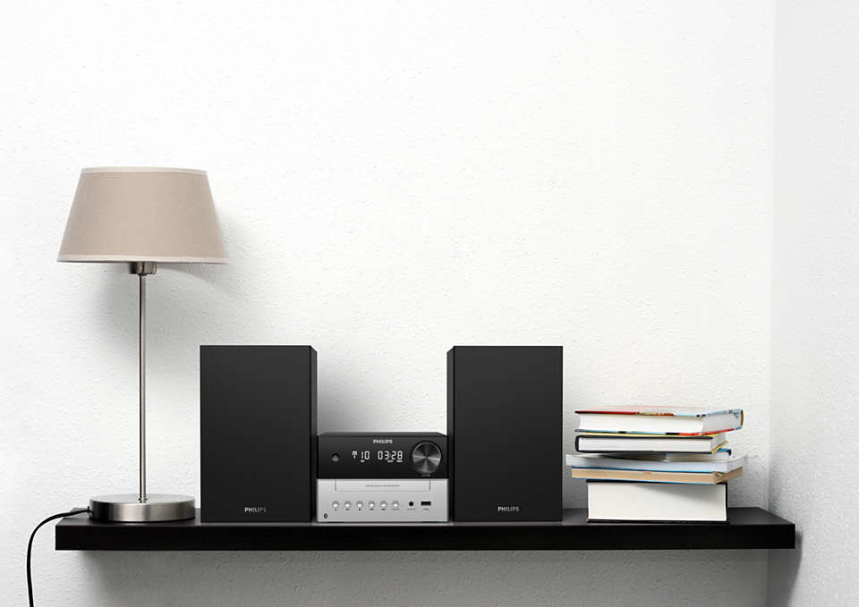 Je hebt geen groot, log geluidssysteem nodig voor een groot, kamervullend geluid. De Philips TAM3205 is een compact microsysteem voor home audio dat niet misstaat, met een vermogen van 18 W en een woofer van 7,62 cm voor een rijke, dreunende bas. Stream muziek draadloos via Bluetooth of stem af op uw favoriete FM-zenders – alles met de heldere, duidelijke weergave die u van de naam Philips mag verwachten. De analoge tuner en het slanke zwart met zilveren design geven het een klassieke hifi-uitstraling, terwijl het LED-display het modern houdt. Met een Bluetooth-bereik van slechts 10 m hoef je de bank nooit meer te verlaten om de muziek aan te zetten.