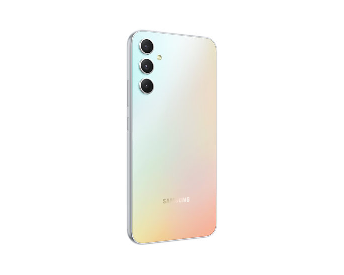 De Galaxy A34 5G heeft strakke lijnen en een schitterende afwerking van glas. Hij is beschikbaar in trendy en tijdloze kleuren, zoals Awesome Lime, Awesome Silver, Awesome Violet en Awesome Graphite.