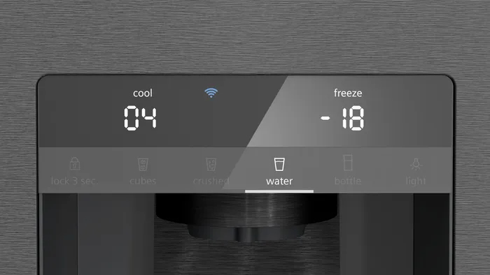 Siemens iQ500 KF96DAXEA, Vrijstaand, Amerikaanse deur, Zwart, Roestvrijstaal, 2 deur(en), Op de deur, 574 l