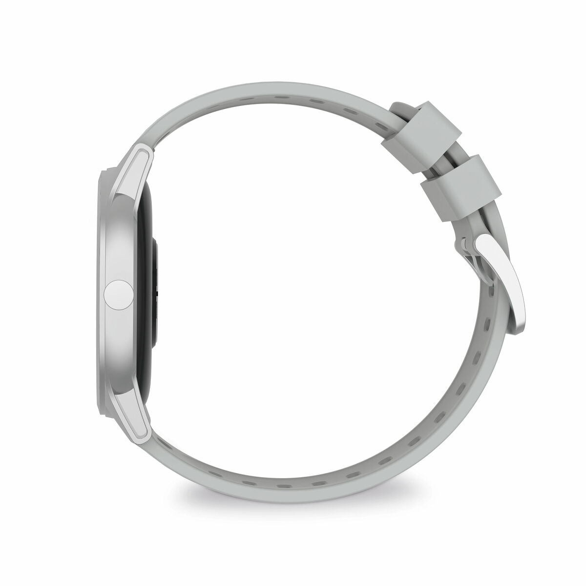 Deze zilveren smartwatch is de ultieme fitnesstracker. Onder de slanke, minimalistische buitenkant schuilt een overvloed aan wellness-monitoring slimmigheden. Magnetisch opladen en IP67 waterdichtheid zorgen ervoor dat hij elk avontuur aankan. Als je hem aan je smartphone koppelt, zorgt de diefstalbeveiliging ervoor dat je waardevolle spullen veilig zijn. Maar de echte held is de gezondheidssuite: hartslag, slaapcyclus en zuurstofverzadigingsniveau in het bloed geven je een ongeëvenaard inzicht in het welzijn van je lichaam. Je hoeft niet meer blind te vliegen als het op je fitheid aankomt. Voor zo’n compact apparaat heeft het een heleboel slimme connectiviteitsfuncties. Synchroniseer je trainingsgegevens en dagelijkse statistieken eenvoudig met de gezondheidsapp van je telefoon. Vergeet het gedoe met omslachtige accessoires – met deze smartwatch ziet gezond leven er moeiteloos stijlvol uit.