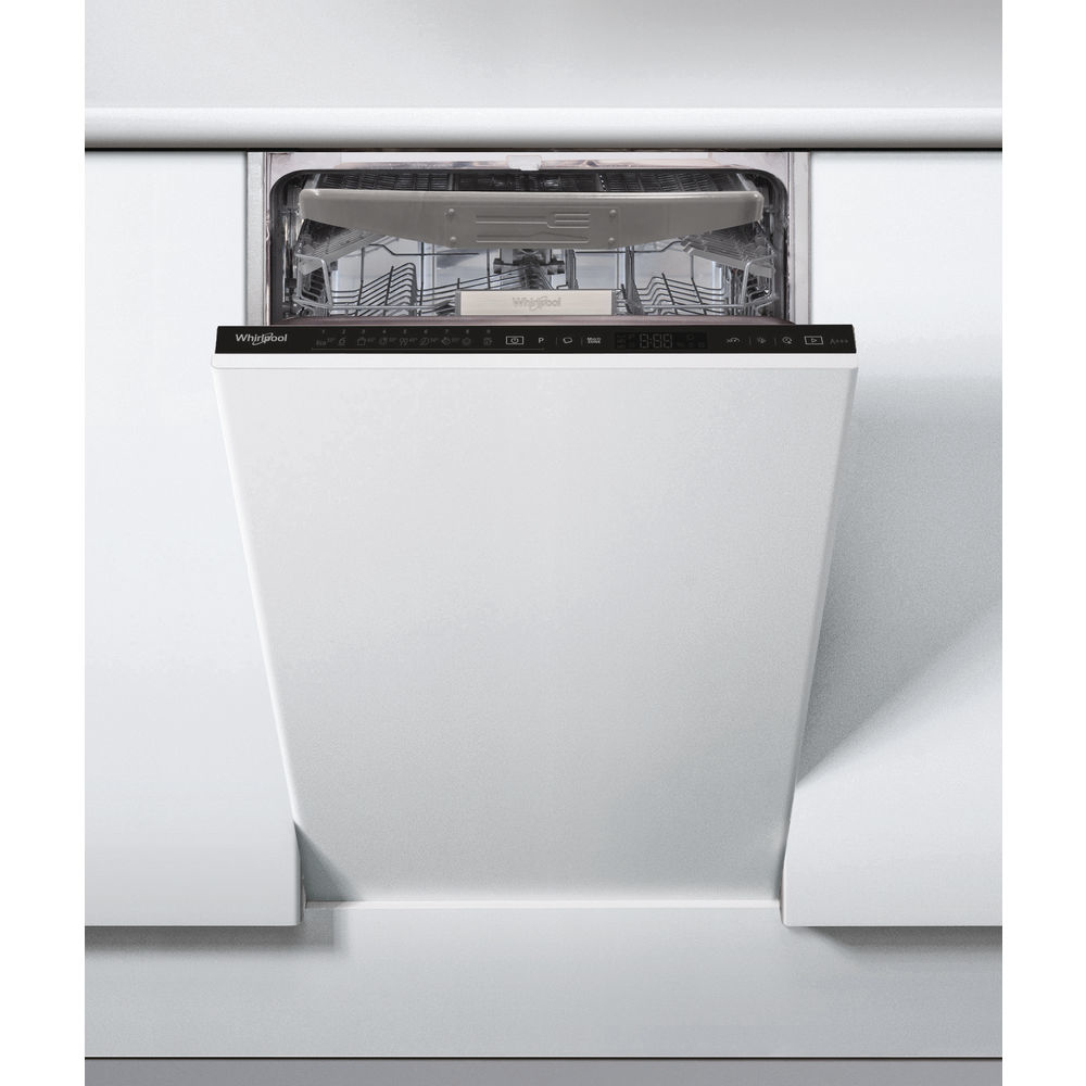 Whirlpool WSIP 4O33 PFE, Volledig ingebouwd, Slimline (45 cm), Zwart, Zwart, Touch, 1,3 m